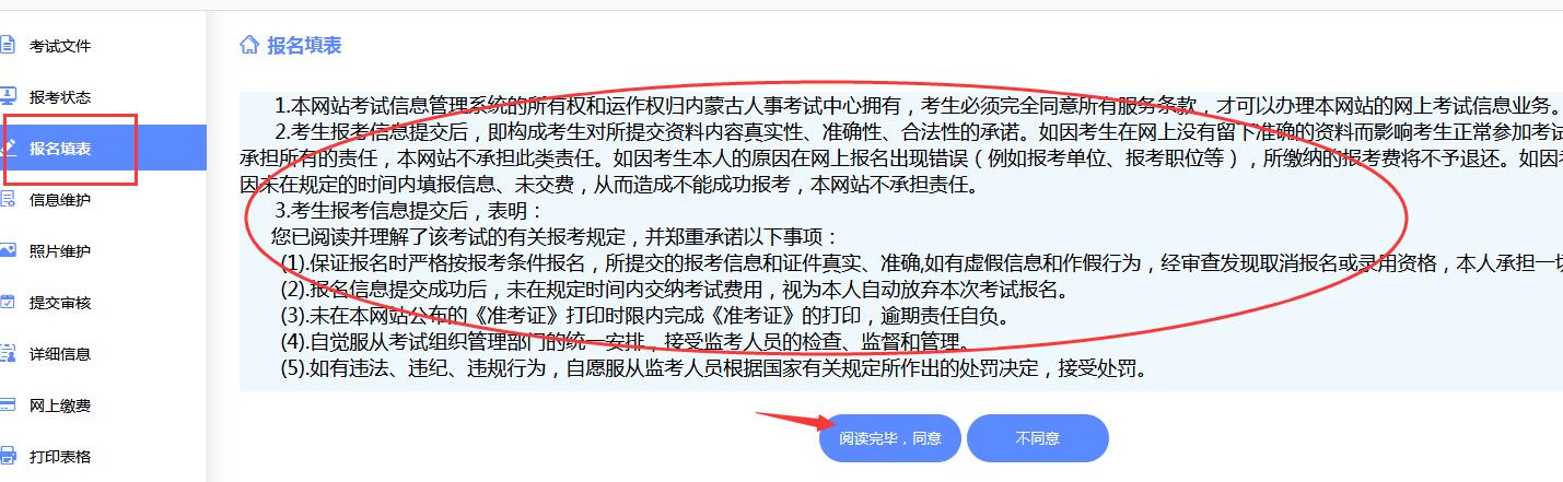1、进入报名填表页面,需要先阅读。阅读完毕点击同意。