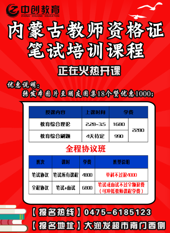 2021内蒙古教师资格证报名时间为3月22号-29号