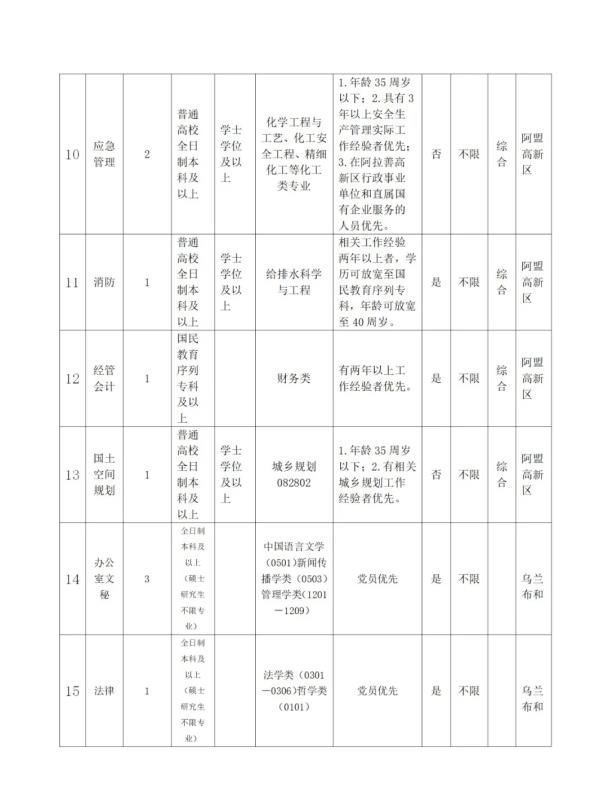 2.《职位表》中涉及的有关学历、学科、专业等资格条件方面的问题,由阿拉善盟精智源人力资源有限公司负责解释。