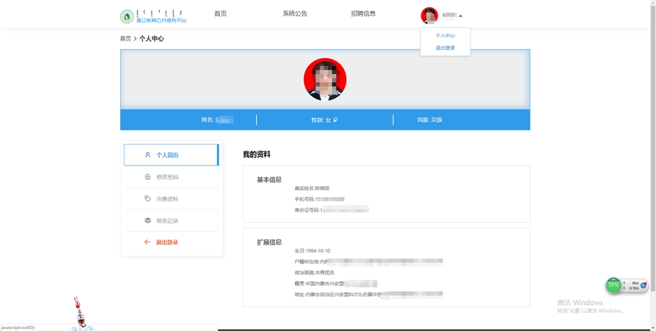 登录过后点击头像进入个人中心,然后点击右侧菜单栏进入报名记录列表。