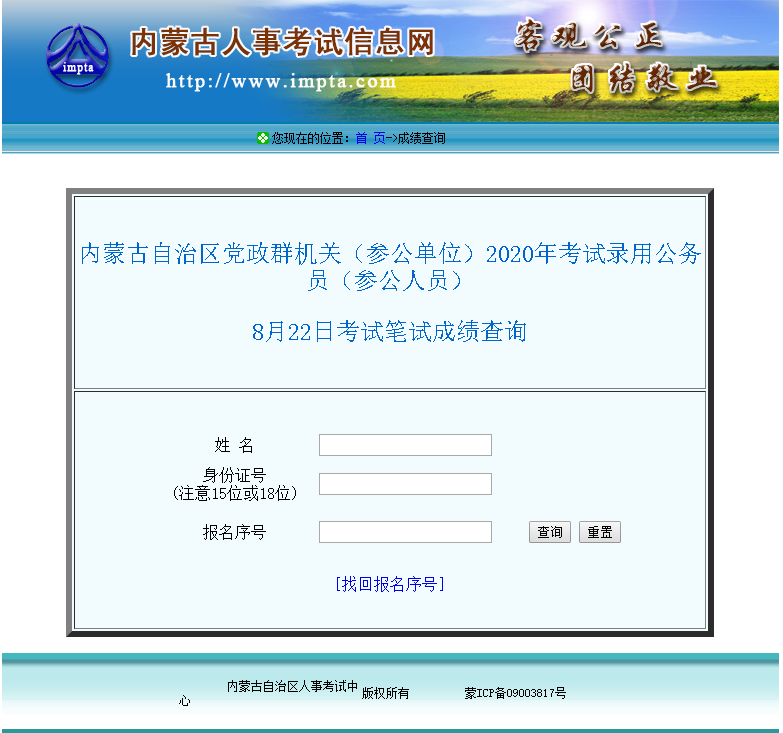 点击链接进入成绩查询入口http://www.impta.com/shhks/cjcx1/gwykscjcxnew822/