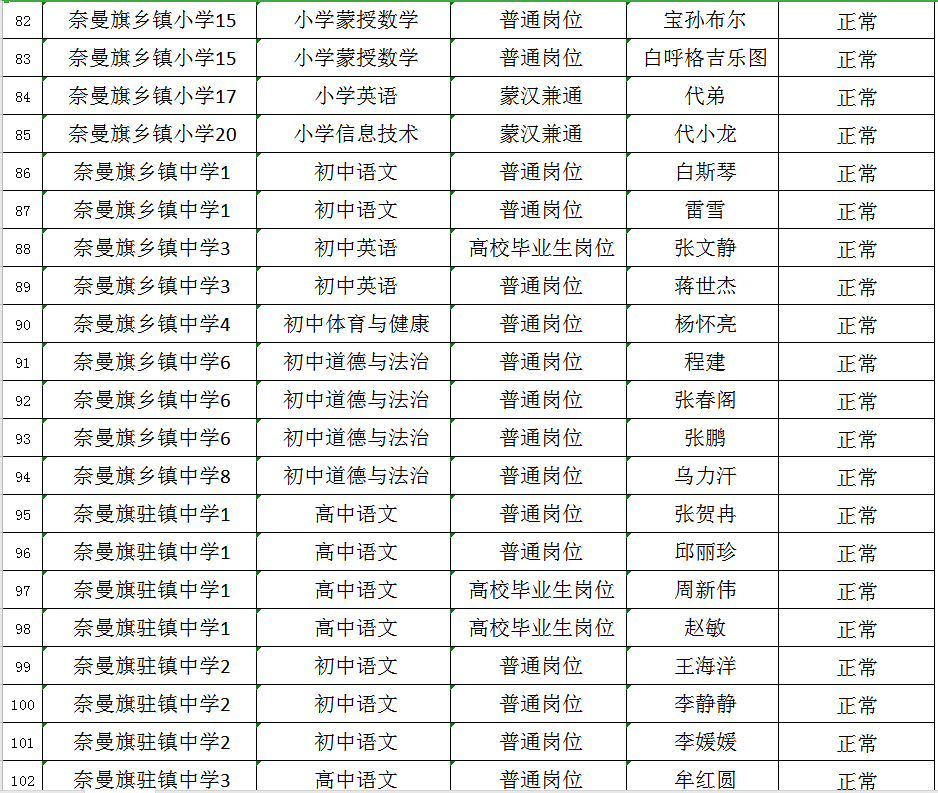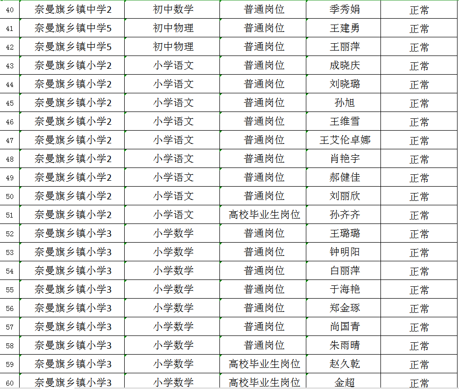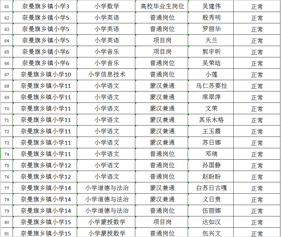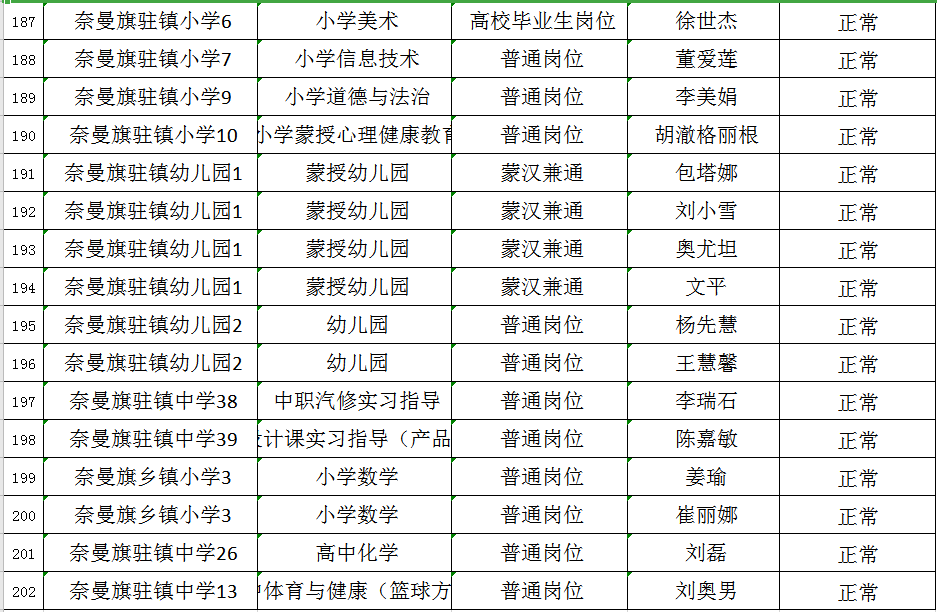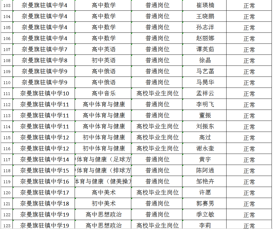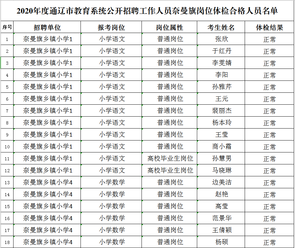 根据《2020年通辽市教育系统公开招聘工作人员简章》要求,现对2020年通辽市教育系统公开招聘工作人员(奈曼旗岗位)体检合格人员名单予以公布。