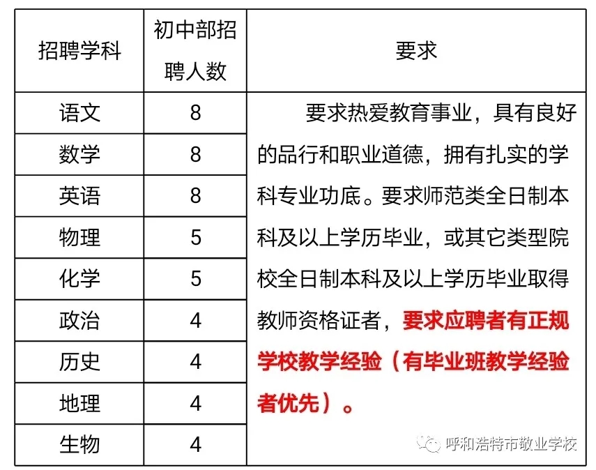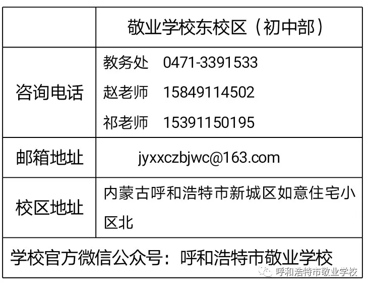 敬业学校现有在校生5000余名,分设东校区(初中部)和南校区(高中部)。经多年积淀,学校形成了一套先进独特、富有成效的教育教学管理体制,以办学规范、管理严格、条件一流、质量上乘而闻名。建校以来,培育了数万名品学兼优的优秀毕业生,中高考成绩位居呼市地区前列。同时学校也造就了一大批在呼市地区具有影响力的优秀青年骨干教师。