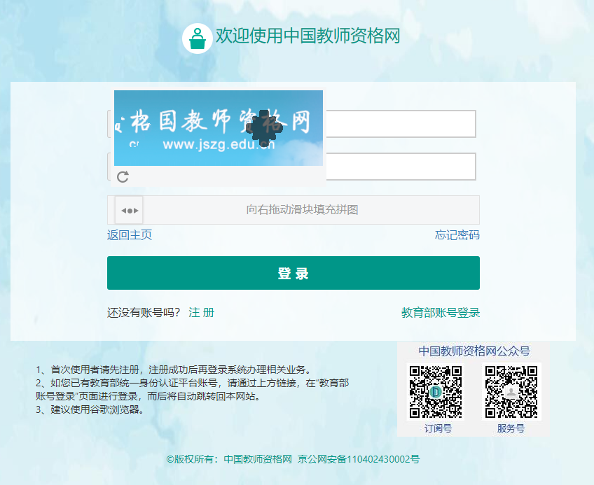 凡在我区2021年春季申请认定教师资格的人员,请于2021年5月17日至5月26日登陆“中国教师资格网”,从“教师资格认定申请人网报入口”,按照系统提示,进行注册和网上申报,逾期系统将自动关闭。要如实、准确填报本人信息并对信息的准确性负责。