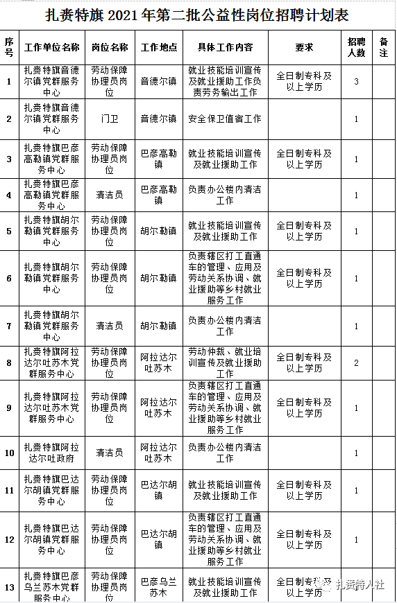 附件:扎赉特旗2021年第二批公益性岗位招聘计划表
