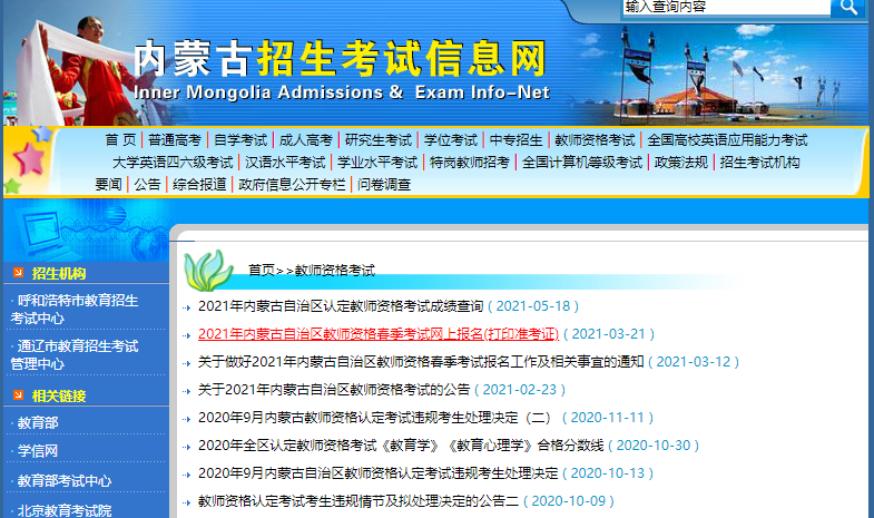 2021年内蒙古自治区认定教师资格考试成绩查询