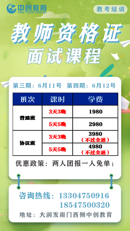 四、测试形式:测试采取说课和面试相结合的方式,综合考察申请人语言表达与思维、写字、仪表仪态、教学目的、教学内容及教材处瑶、教学方法、教学基本功、教学技能、教学态度及教案等情况。