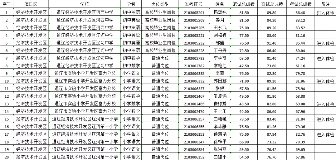附件:2021年通辽市教育系统公开招聘工作人员开发区相关岗位总成绩