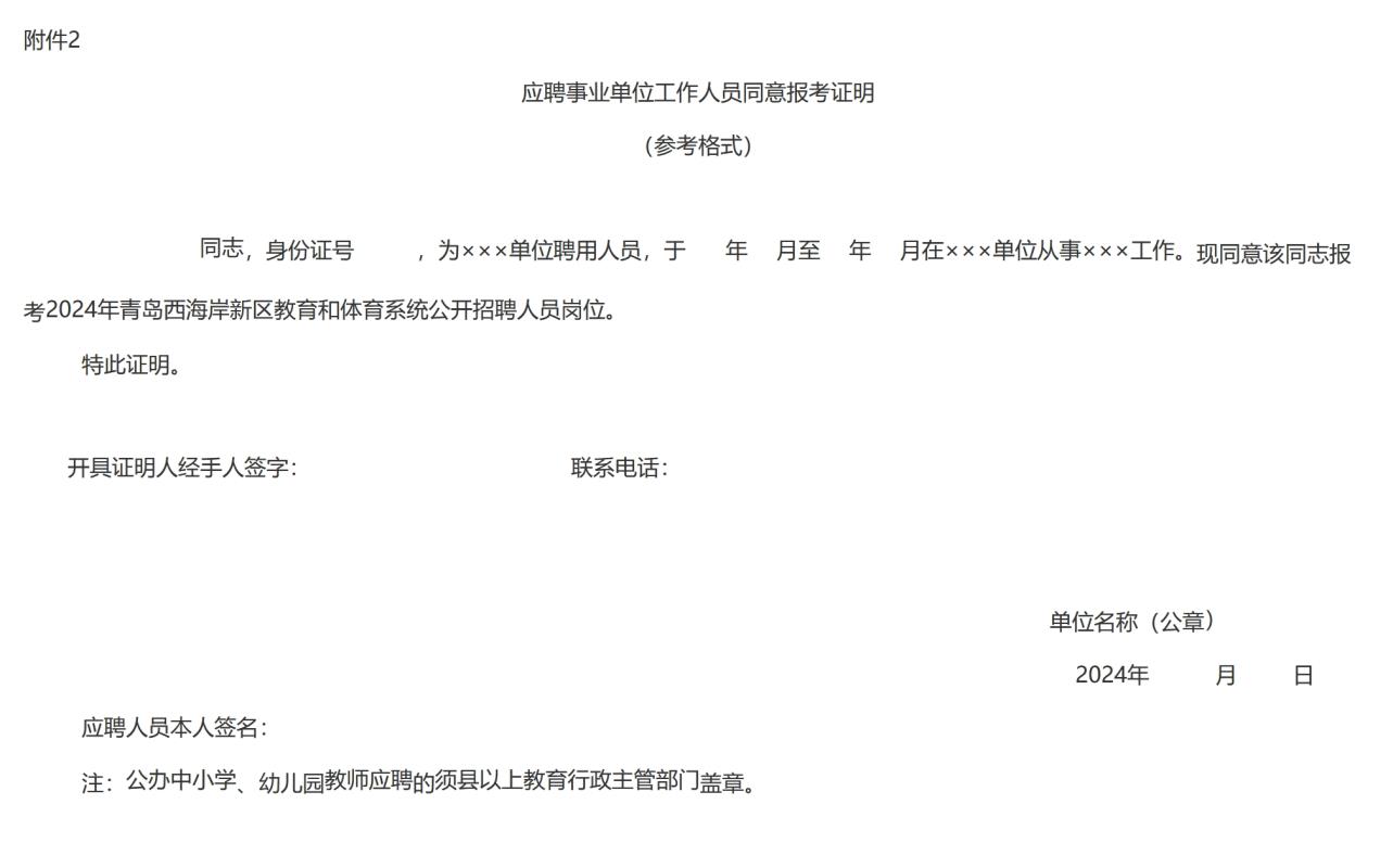 2.《应聘事业单位工作人员同意报考证明》