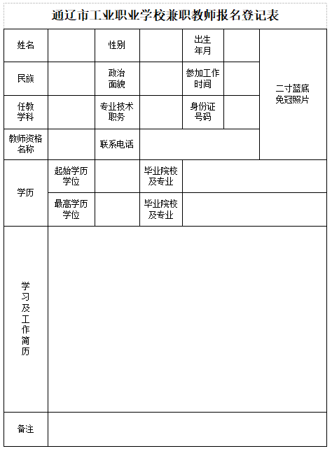 附件:通辽市工业职业学校兼职代课教师报名登记表